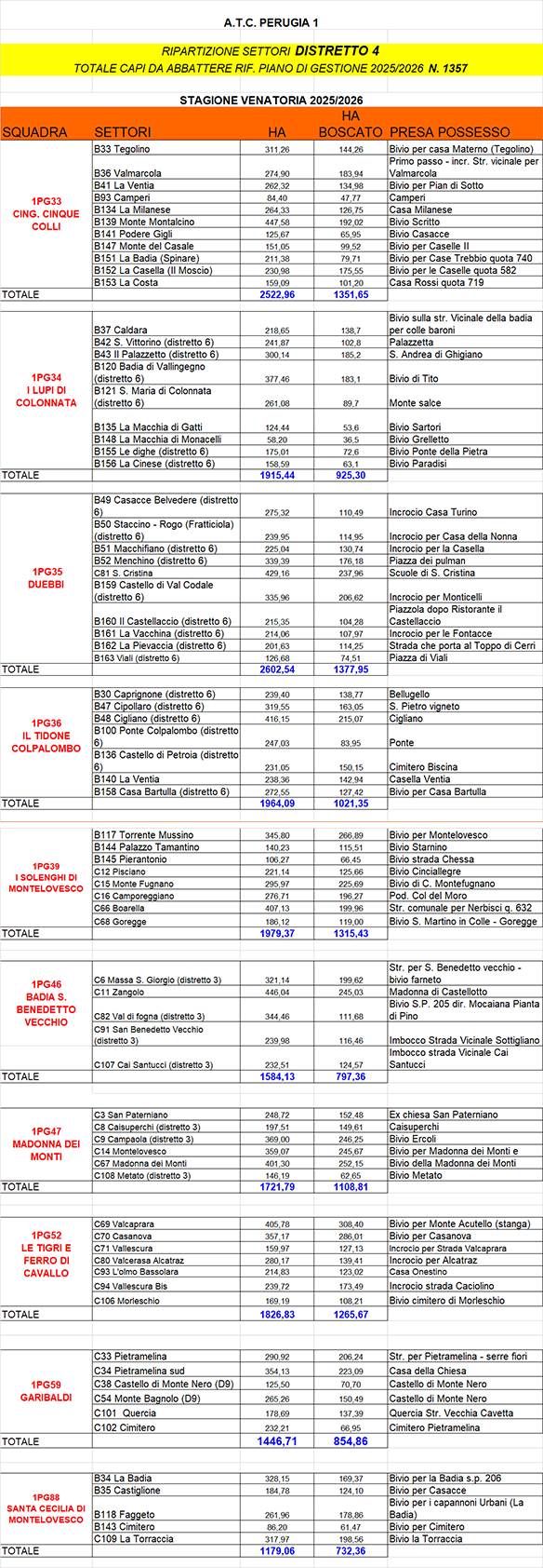 ATC Perugia 1 - Ambito Territoriale di caccia - Via del Nestore 1/bis - 06135 - Ponte San Giovanni (PG) - Cod. Fis. 90009370546
