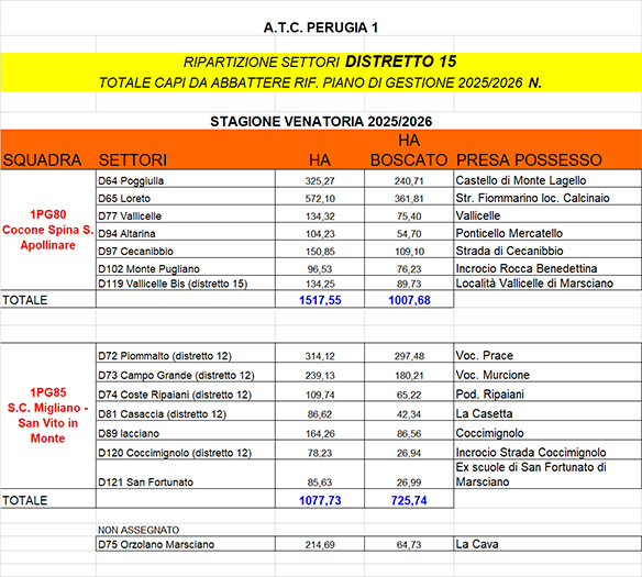ATC Perugia 1 - Ambito Territoriale di caccia - Via del Nestore 1/bis - 06135 - Ponte San Giovanni (PG) - Cod. Fis. 90009370546