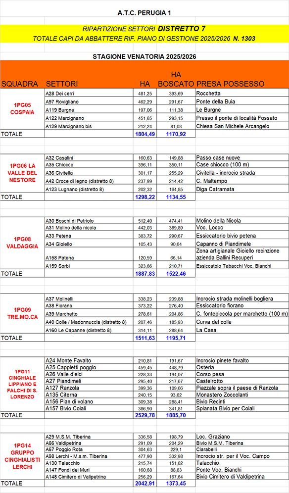 ATC Perugia 1 - Ambito Territoriale di caccia - Via del Nestore 1/bis - 06135 - Ponte San Giovanni (PG) - Cod. Fis. 90009370546