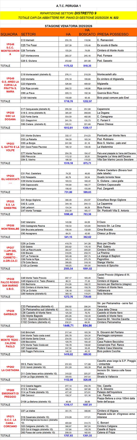 ATC Perugia 1 - Ambito Territoriale di caccia - Via del Nestore 1/bis - 06135 - Ponte San Giovanni (PG) - Cod. Fis. 90009370546